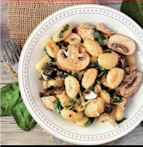 Gnocchis Pesto D Avocat Champignons Et Epinards Fourneaux Et Recette Gnocchi Champignon Epinard