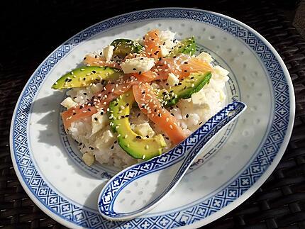 Recette De Chirashi Saumon Fume Avocat Mozza Salade Japonaise Recette Salade De Riz Et Saumon